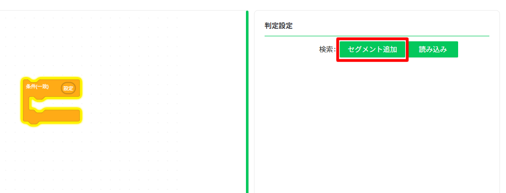 (2)条件(一致)パーツを選択し、「セグメント追加」をクリック。