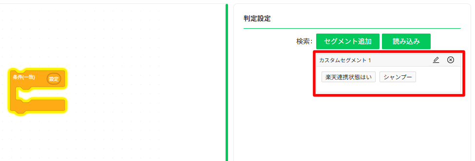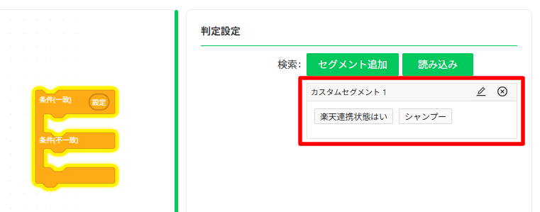 ※共通判定のパーツでも同様に商品管理番号によるセグメント設定が可能です。